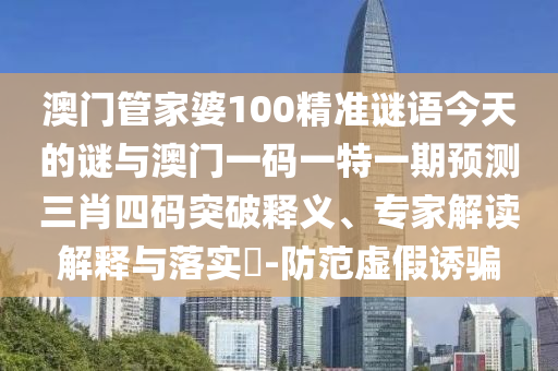 澳门管家婆100精准谜语今天的谜与澳门一码一特一期预测三肖四码:突破释义、专家解读解释与落实​