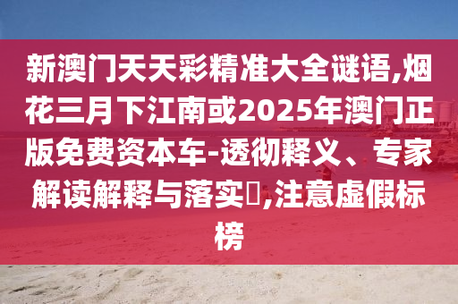 关于新澳门天天彩精准大全谜语、烟花三月下江南以及澳门正版免费资本车的全面释义、专家解读与落实以及警惕虚假宣传的文章
