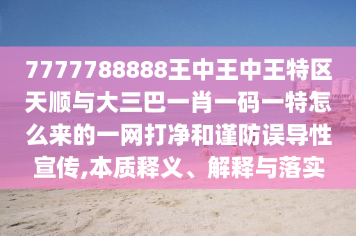 关于关键词“7777788888王中王中王特区天顺与大三巴一肖一码一特怎么来的一网打净”,以及“谨防误导性宣传”的本质释义、解释与落实,以下是我的分析: