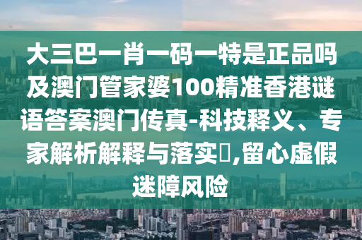 关于大三巴一肖一码一特是正品吗及澳门管家婆100精准香港谜语答案澳门传真等相关概念,涉及到科技释义、专家解析解释与落实等方面,需要用户了解并留心虚假迷障风险,下面将详细阐述这些概念及相关内容。