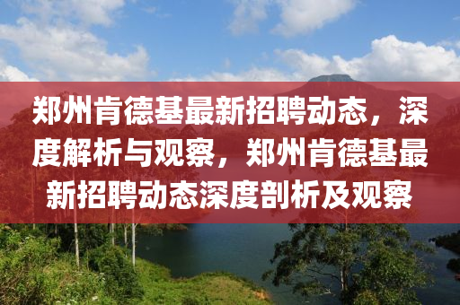 随着经济的复苏和行业的持续发展,郑州肯德基近期展开了一系列新的招聘活动,为广大求职者提供了众多就业机会,本文将从新闻报道的视角出发,结合个人见解,对郑州肯德基的最新招聘动态进行深入剖析。