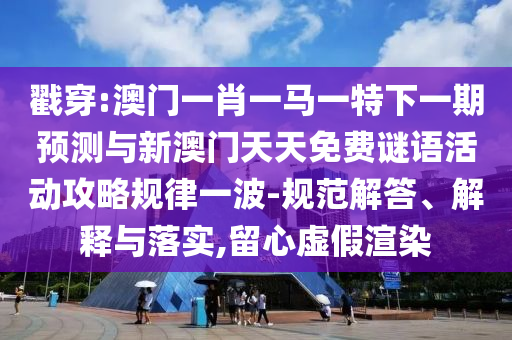 关于戳穿澳门一肖一马一特下一期预测与新澳门天天免费谜语活动攻略规律一波的解析