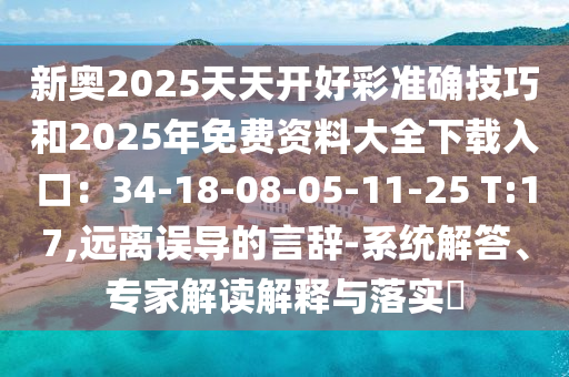 新奥2025天天开好彩准确技巧和2025年免费资料大全下载入口:34-18-08-05-11-25 T:17,远离误导的言辞-系统解答、专家解读解释与落实