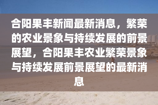 在美丽的合阳县,果丰产业又迎来了一个令人振奋的丰收季节,本文将结合最新消息,以新闻报道的视角为您揭示合阳果丰产业的繁荣景象,并融入自己的见解,展望其未来发展前景。