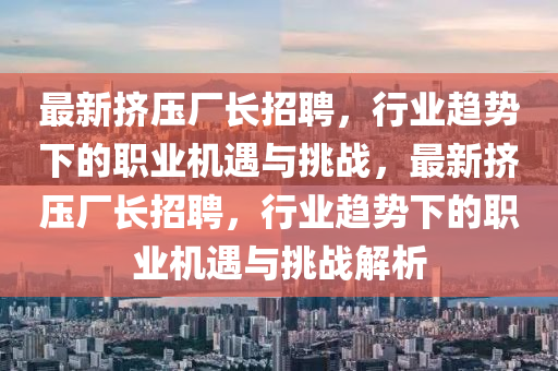 随着科技的进步和工业领域的持续发展,挤压厂长这一职业逐渐受到广泛关注,随着行业内各大企业的扩张和转型升级,挤压厂长招聘成为热点话题,本文将结合当前行业趋势,以新闻报道的视角对挤压厂长招聘进行深入剖析,并融入自己的观点和见解。