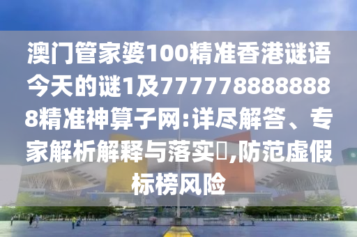 关于澳门管家婆100精准香港谜语今天的谜1及777778888888精准神算子网的相关解析与防范虚假宣传风险