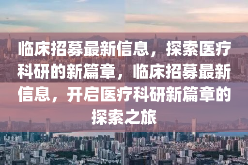 随着医学技术的不断进步,临床招募在医疗科研领域扮演着越来越重要的角色,本文将围绕临床招募的最新信息,从新闻报道的视角出发,结合个人见解,探讨其发展趋势和对医疗行业的影响。