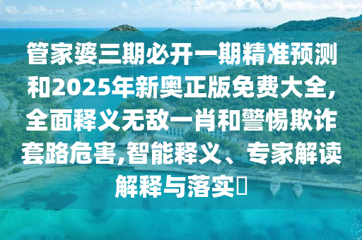 管家婆三期必开一期精准预测”、“2025年新奥正版免费大全”以及“全面释义无敌一肖的警惕欺诈套路危害”的解读与落实