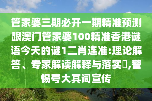 管家婆三期必开一期精准预测跟澳门管家婆100精准香港谜语今天的谜1二肖连准:理论解答、专家解读解释与落实​,警惕夸大其词宣传