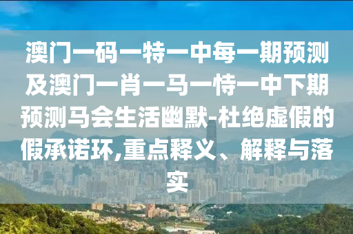 澳门一码一特一中每一期预测及澳门一肖一马一恃一中下期预测马会生活幽默等相关概念,在近年来引起了广大民众的关注与讨论,这些概念涉及到彩票预测、博彩行业以及与之相关的娱乐元素,但我们需要明确一点,任何预测都是基于概率和统计的推测,而非绝对的真实,下面,我们将从专家解读的角度,全面释义并落实这些相关概念,帮助用户认清本质,杜绝虚假的假承诺。