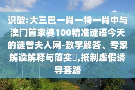 识破:大三巴一肖一特一肖中与澳门管家婆100精准谜语今天的谜曾夫人网-数字解答、专家解读解释与落实​,抵制虚假诱导套路