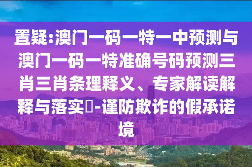 关于澳门一码一特一中预测与澳门一码一特准确号码预测三肖三肖条理的全面释义、专家解读与落实及谨防欺诈的假承诺境