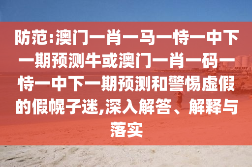 关于关键词“防范”、“澳门一肖一马一恃一中下一期预测牛”或“澳门一肖一码一恃一中下一期预测”的深入解答、解释与落实,以及警惕虚假宣传