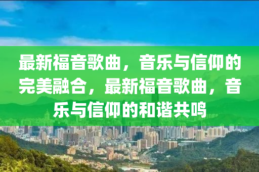 最新福音歌曲是音乐与信仰的完美融合,它们以优美的旋律和感人的歌词,传达着信仰的力量和温暖,通过融合现代音乐元素和传统福音音乐的精髓,最新福音歌曲为信仰注入了新的活力,也让更多的年轻人更容易接受和喜爱福音音乐。