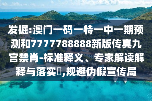 澳门一码一特一中一期预测和7777788888新版传真九宫禁肖的标准释义、专家解读解释与落实​
