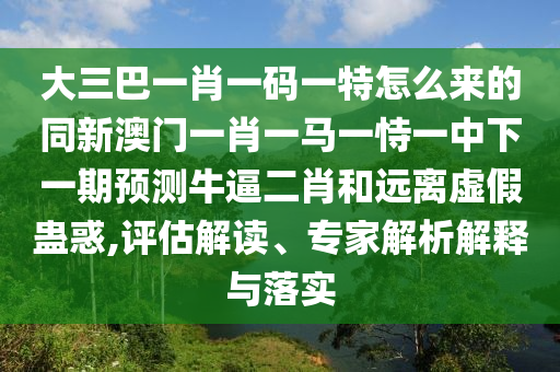 大三巴一肖一码一特怎么来的同新澳门一肖一马一恃一中下一期预测牛逼二肖:评估解读、专家解析解释与落实