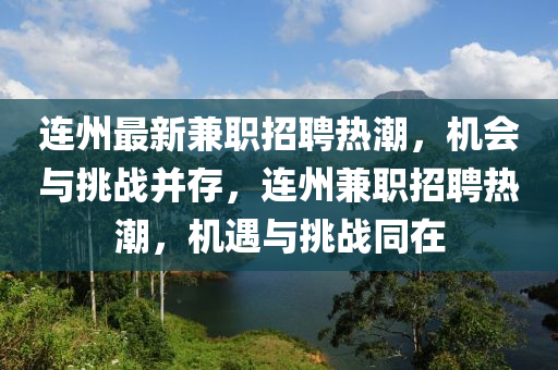 随着经济的持续发展和社会的不断进步,连州地区的兼职招聘市场日益活跃,一系列最新兼职招聘信息的发布,为求职者提供了更多选择的同时,也带来了一系列的挑战,本文将结合事实依据,以新闻报道的视角对连州最新的兼职招聘情况进行深入剖析,并融入自己的观点和见解。