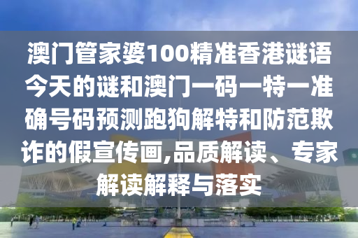 澳门管家婆100精准香港谜语今天的谜和澳门一码一特一准确号码预测跑狗解特:品质解读、专家解读解释与落实