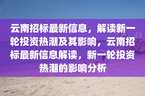 随着国家宏观政策的引导和市场需求的推动,云南省的招标活动日益活跃,本文将结合最新招标信息,分析新一轮投资热潮背后的动因,并探讨其对云南乃至全国经济社会发展的影响。