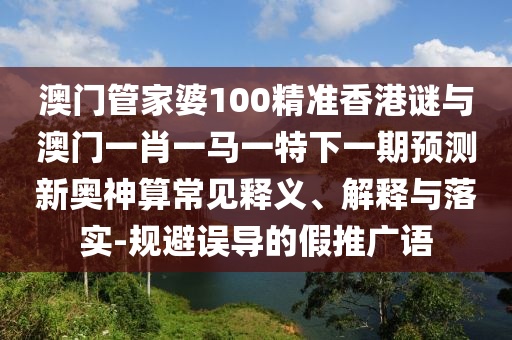 澳门管家婆100精准香港谜与澳门一肖一马一特下一期预测新奥神算的常见释义、解释与落实