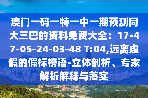 澳门一码一特一中一期预测同大三巴的资料免费大全:17-47-05-24-03-48 T:04:立体剖析、专家解析解释与落实