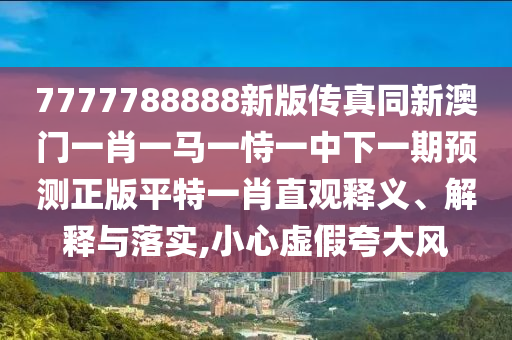 7777788888新版传真同新澳门一肖一马一恃一中下一期预测正版平特一肖:直观释义、解释与落实