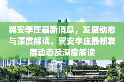 本文将围绕翼安李庄的最新消息,从新闻报道的视角出发,结合个人见解,探讨该地区的最新发展动态,并分析其背后的原因和影响。